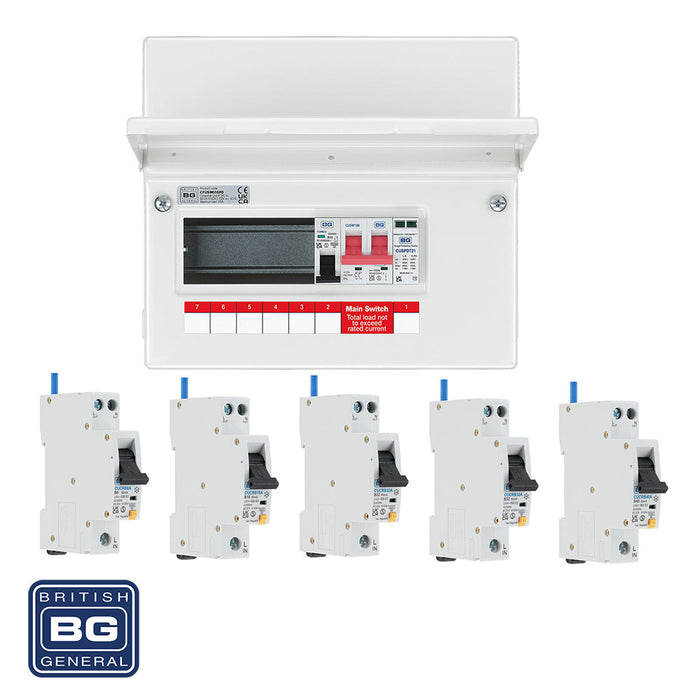BG Fortress CFUSW05SPD 9 Module 5 Way 100A Main Switch Consumer Unit with T2 SPD + 5 RCBOs