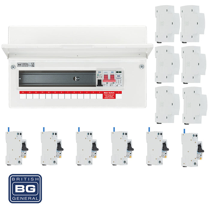 BG Fortress CFUSW12SPD 16 Module 12 Way 100A Main Switch Consumer Unit with T2 SPD + 6 RCBOs & 6x CUA19 FREE Blanks