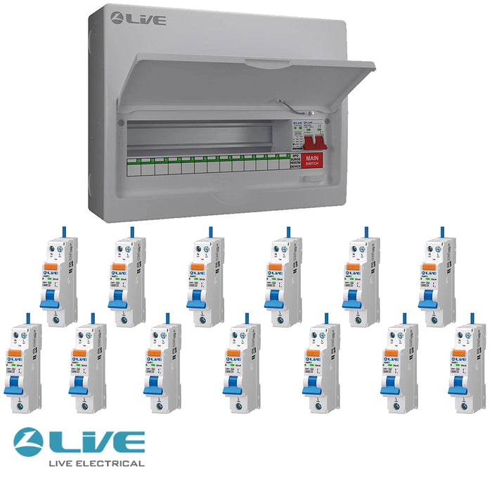 LIVE Electrical LSMC16M-SP 13 Usable Way 20/40kA T2 SPD Metal Consumer Unit & 13 AMR Type A Bi-Directional RCBOs