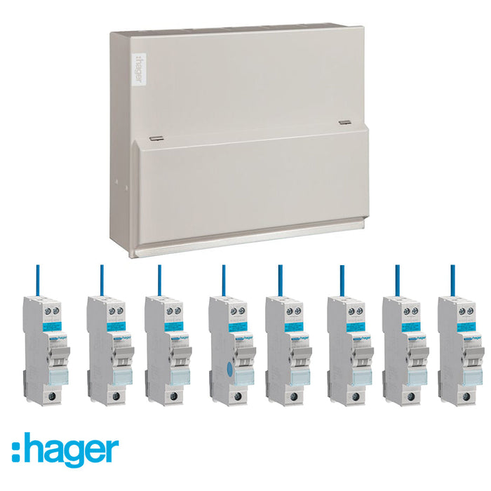 Hager VML108SPD 8 Way 100A Main Switch Consumer Unit with T2 SPD + 8 RCBOs