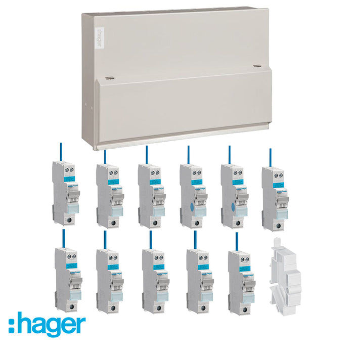Hager VML112SPD 12 Way 100A Main Switch Consumer Unit with T2 SPD + 11 RCBOs & 1x FREE Blanks