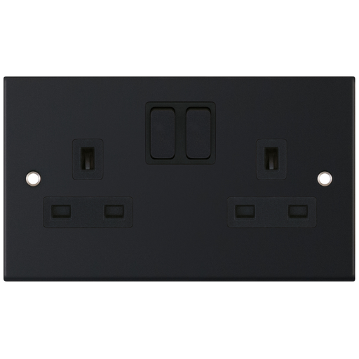 Selectric DSL11-85 5M 2 Gang 13A Switched DP Socket Outlet with Outboard Rockers & 2 Earth Terminals - Matt Black, Black Insert