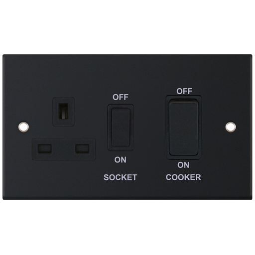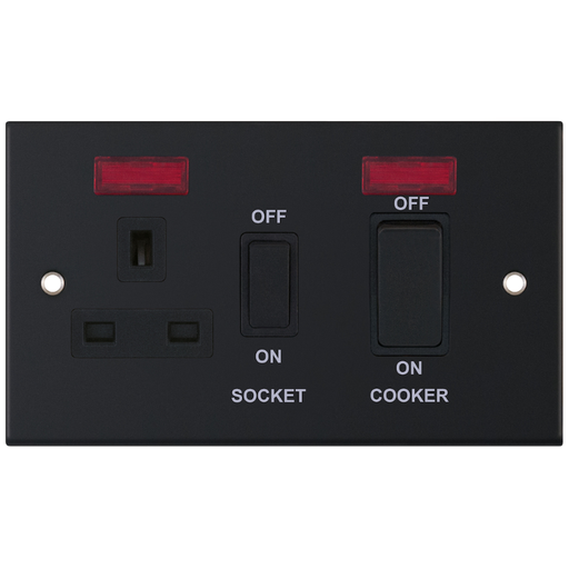 Selectric DSL11-31 5M 45A Cooker Unit with 13A Switched Socket & Neon - Matt Black, Black Insert