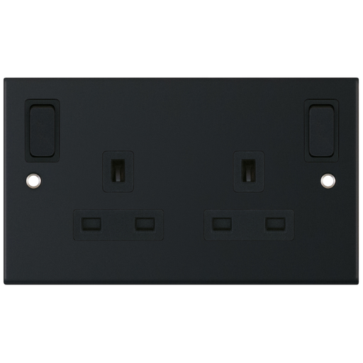 Selectric DSL11-22 5M 2 Gang 13A Switched DP Socket Outlet with 2 Earth Terminals - Matt Black, Black Insert