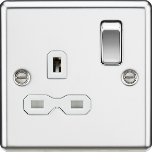 Knightsbridge CL7PCW Rounded Edge 13A 1G DP Switched Socket – Polished Chrome + White Insert (10 Pack) Enhance your interiors with the Knightsbridg...