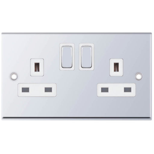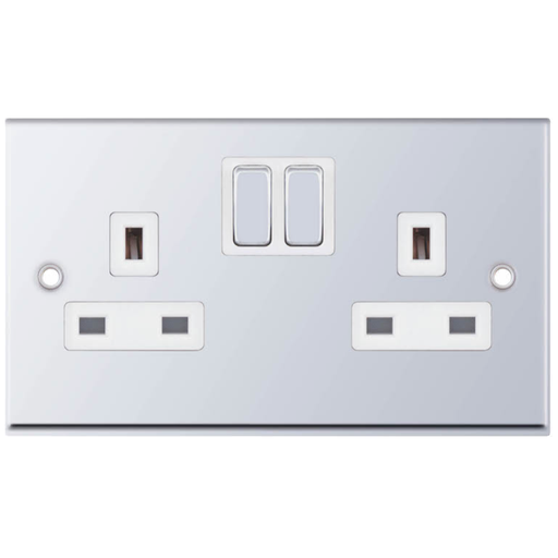 Selectric 7MPRO-322 7M-PRO 2 Gang 13A Switched DP Socket Outlet with 2 Earth Terminals - Polished Chrome, White Insert