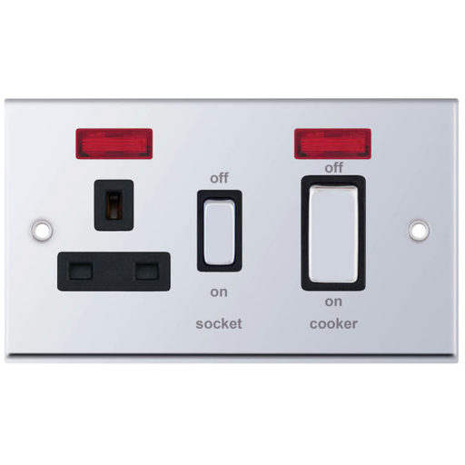 Selectric 7MPRO-531 7M-PRO 45A Cooker Unit with 13A Switched Socket & Neon - Polished Chrome, Black Insert