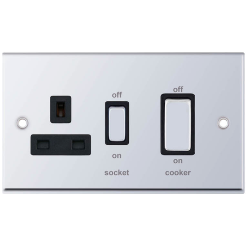 Selectric 7MPRO-549 7M-PRO 45A Cooker Unit with 13A Switched Socket - Polished Chrome, Black Insert Product Description 45A Cooker Unit with 13A Sw...
