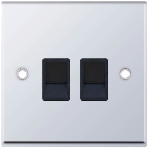 Selectric 7MPRO-541 7M-PRO 2 Gang RJ45 Data Socket - Polished Chrome, Black Insert