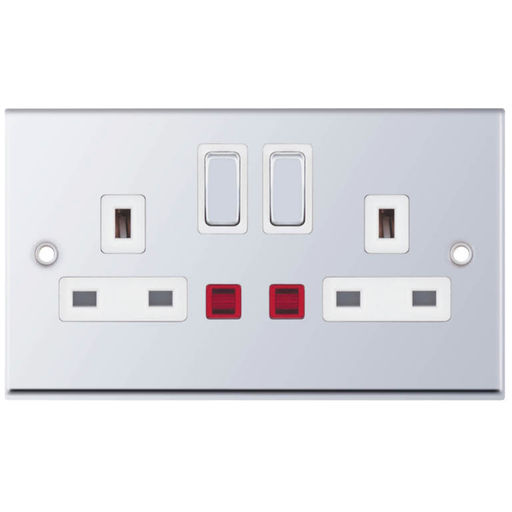 Selectric 7MPRO-324 7M-PRO 2 Gang 13A Switched DP Socket Outlet with Neon - Polished Chrome, White Insert