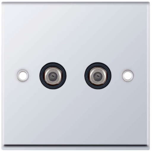Selectric 7MPRO-534 7M-PRO 2 Gang Coaxial TV Socket - Polished Chrome, Black Insert