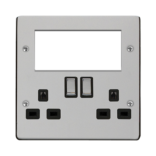 Click Deco Plus DPCH604BK 2 Gang 3 Pin Safety Shutter Switched Socket with Quad New Media Apertures - Polished Chrome (Black)