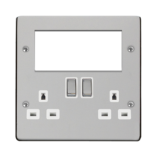 BG Nexus Metal 2x 2G Socket 13A + 2x 4 Module Aperture - White Insert - Polished Chrome Premium POLISHED CHROME metal accessories, in a range of s...