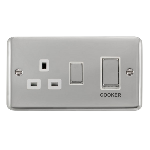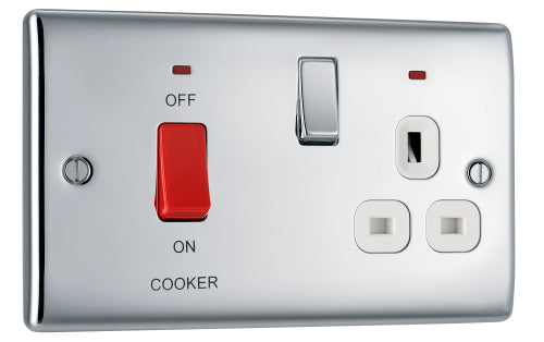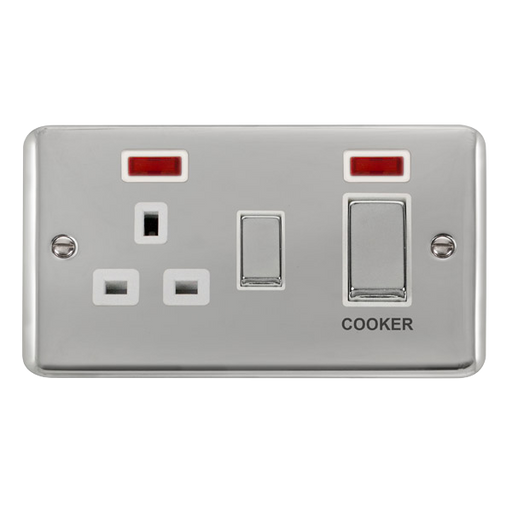 Knightsbridge CL83MNPCW Rounded Edge 45A DP Cooker Switch + 13A Switched Socket + Neon - Polished Chrome + White Insert