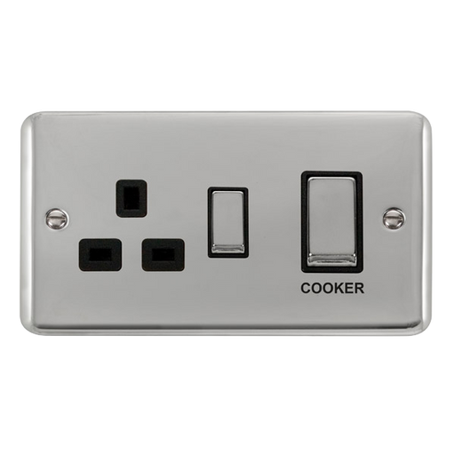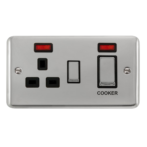 Knightsbridge CL83MNPC Rounded Edge 45A DP Cooker Switch + 13A Switched Socket with Neon - Polished Chrome & Black Insert The Knightsbridge CL8...