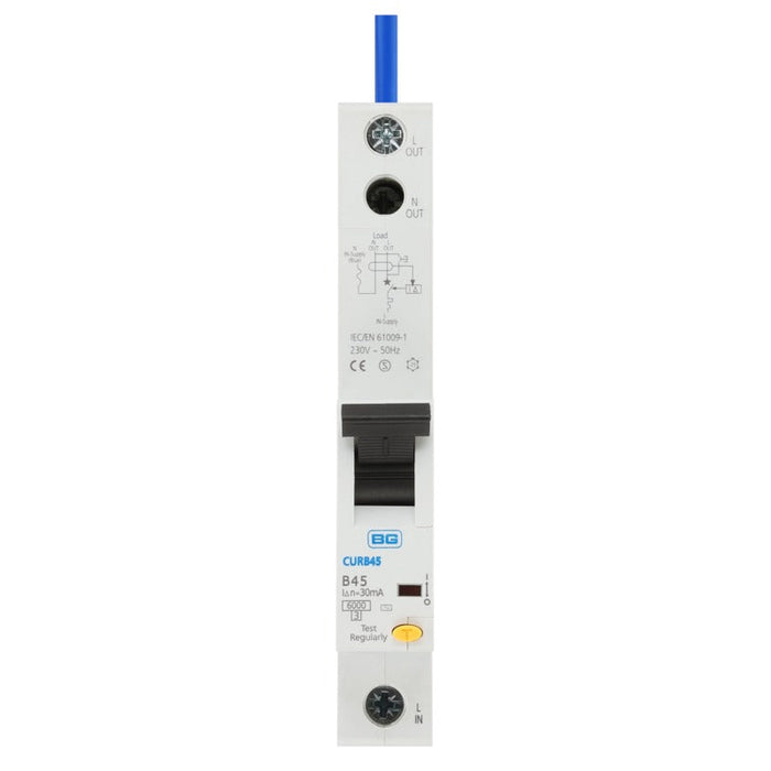 BG CURB45 45A Single Pole Type AC RCBO - B Curve 6kA 30mA
