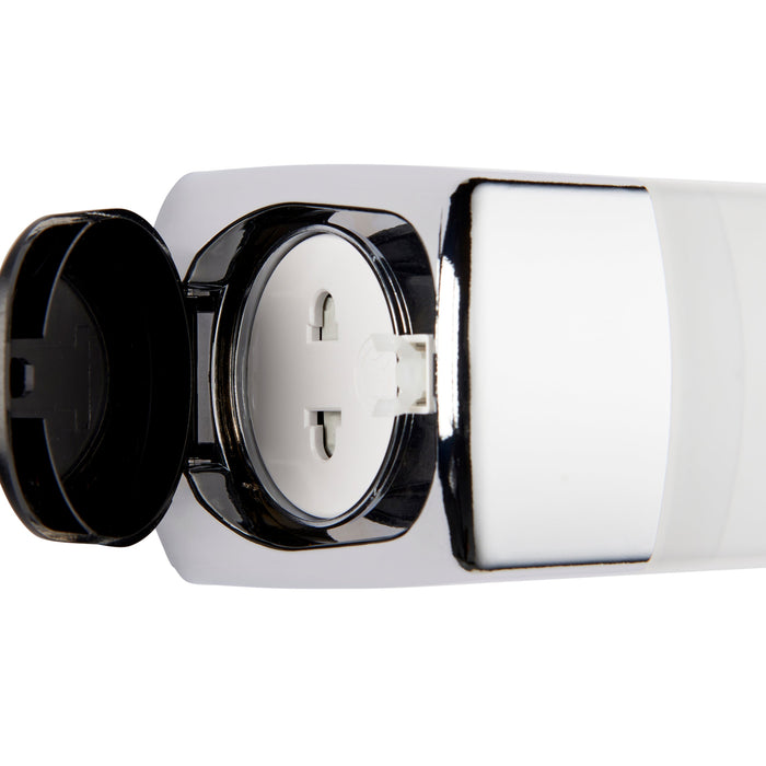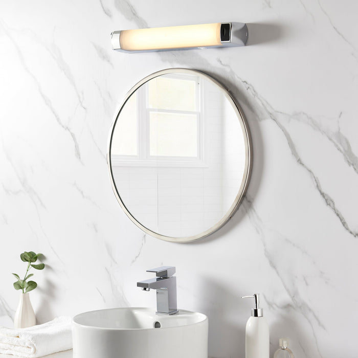 Introducing the new modern & sleek shaver light from Saxby Lighting. Jude CCT is finished in chrome and features a shaver socket on the side of the fitting. It boasts an integrated 8W LED module and the ability to choose between 3 colour temperatures: 3000K, 4000K and 6000K to suit your space. The IP44 rated fitting provides an impressive 850 lumens at 106lm/w and is a stylish addition to any modern bathroom.
