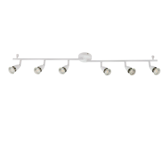 Product DescriptionA simple six light spotlight bar from the Amalfi range finished in gloss white. Fully adjustable so light can be directed exactly where you need it. Suitable for commercial and domestic use. Matching items and different colour options available.