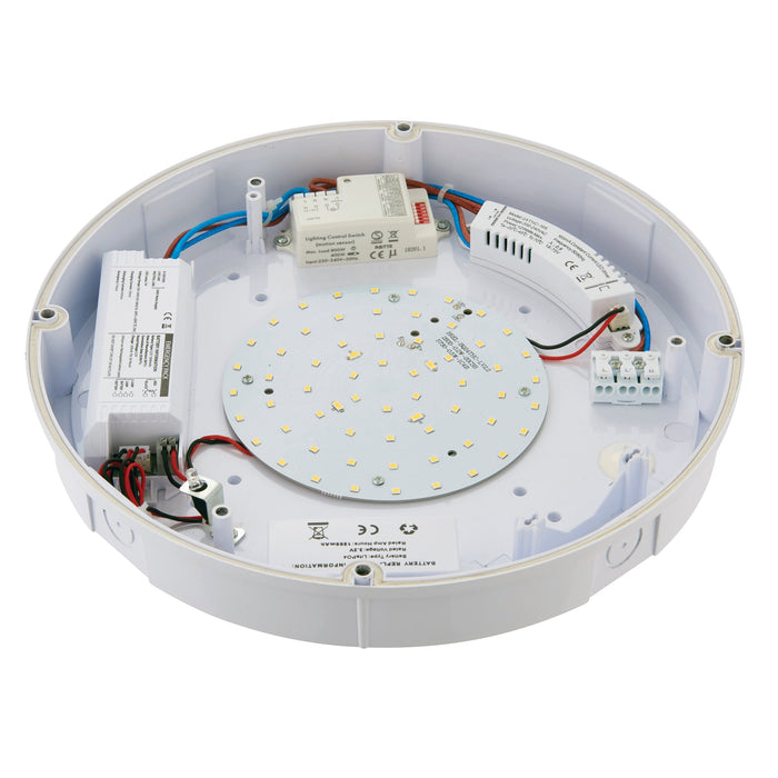 Saxby 77896 Forca Microwave emergency EM IP65 12W Gloss white & opal pc 12W LED module (SMD 2835) Cool White