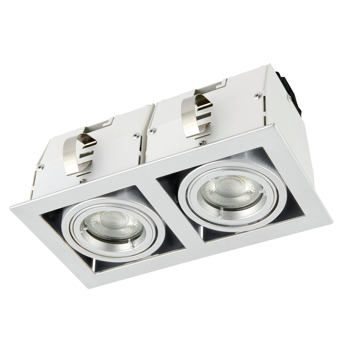 Product DescriptionThe Garrix is a twin boxed, recess downlight finished in matt white & silver. It is robust and offers protection due to its metal casing. This twin downlight is adjustable, allowing precise light projection. Ideal for commercial use and comes in a variety of sizes and colours.
