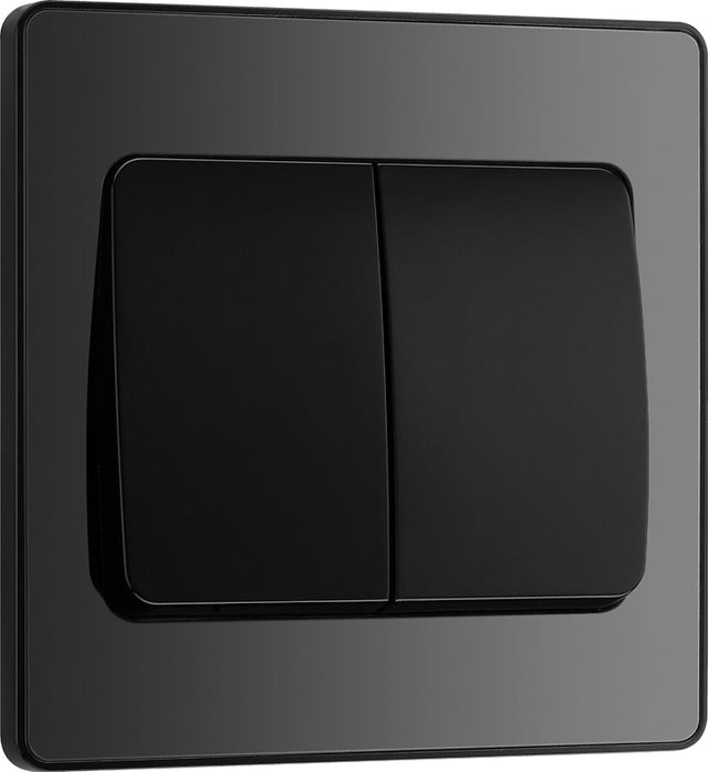 BG Evolve PCDBC42WB 20A 16AX 2 Way Double Light Switch, Wide Rocker - Black Chrome (Black)