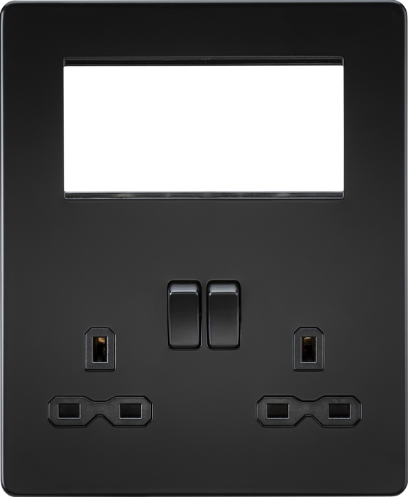 Knightsbridge SFR194MBB Screwless Small Multimedia Combination Plate - Matt Black + Black Rocker