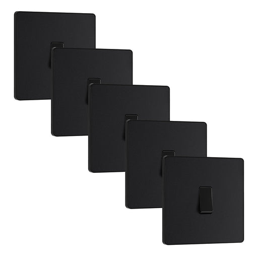 BG FFB12x5 Flatplate Screwless 20A 16AX 2 Way Single Light Switch - Matt Black (5 Pack)