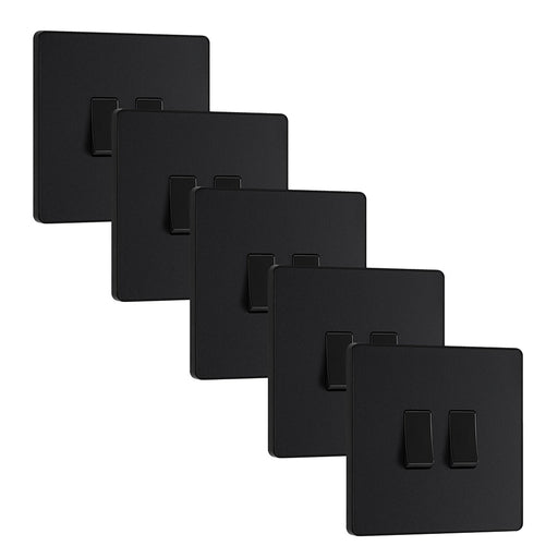 BG FFB42 Flatplate Screwless 20A 16AX 2 Way Double Light Switch - Matt Black (5 Pack)
