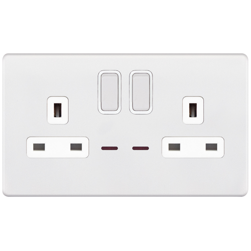 Selectric 5MPLUS-924 5M-PLUS Screwless 2 Gang 13A Switched DP Socket Outlet with Neon - Matt White, White Insert