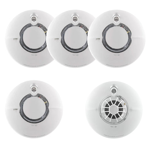 HiSPEC BATTERY Power Radio Frequency 4x Smoke & 1x Heat Detector RF10-PRO with 10Yr Sealed Lithium Battery