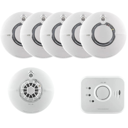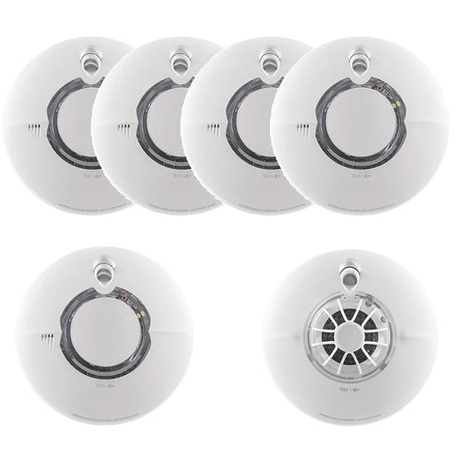 Aico 5x Ei650iRF Optical Smoke & 1x Ei630iRF Heat Alarm Kit Battery Powered RadioLINK with 10 Year Sealed-In Lithium Battery