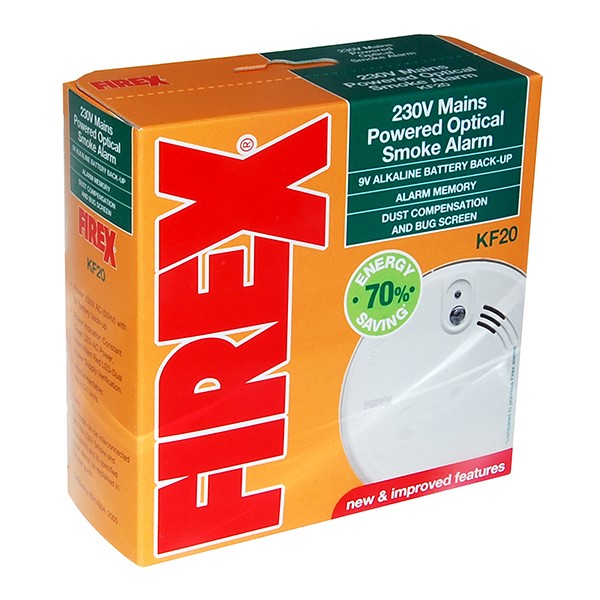 Kidde KF20 Firex Mains Powered Optical Smoke Alarm with Alkaline Battery Back-Up