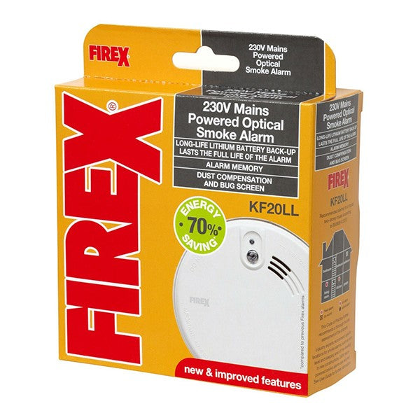 Kidde KF20LL Firex Mains Powered Optical Smoke Alarm with Long-Life Lithium Battery Back-Up