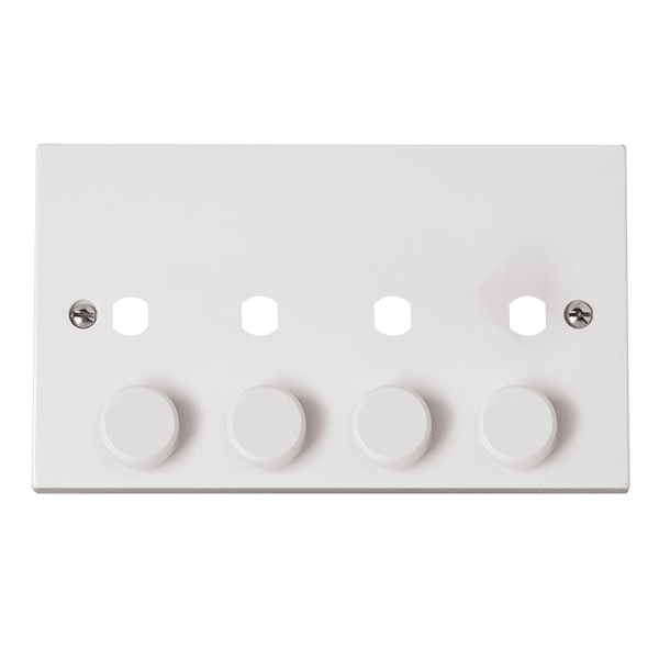 Click Polar PRW148PL White Moulded PRW 4 GANG DOUBLE DIMMER PLATE & KNOBS