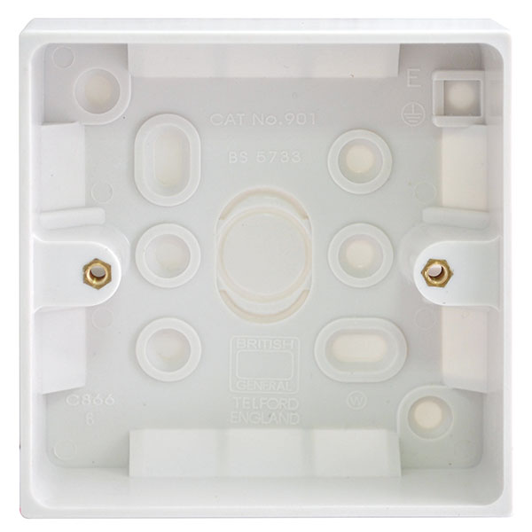 - Surface boxes have multiple knock-outs and earth terminal fitted as standard