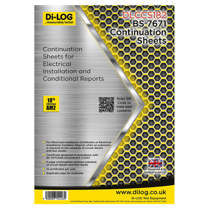 The DLCCS182 is a continuation sheet for an Electrical Installation Certificate or Electrical Installation Condition Report when an extension is to the Schedule Of Circuit Details And Test Results is required.