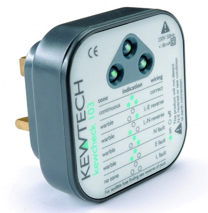 Kewtech KEWCHECK 103 Socket Tester with Audible Tone & LED
