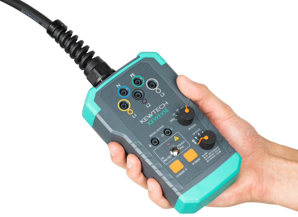 The KEWEVSE is a great addition to your test equipment as it enables loop, RCD and RDCD testing using a suitable MFT like the KT66DL. It simulates the presence of a car so the functionality of the EV supply equipment can also be tested including PE fault.