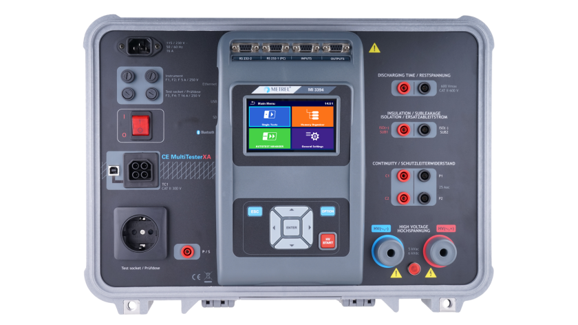 The MI 3394 CE MultiTesterXA is a portable instrument intended for electrical safety testing and CE certification of electrical appliances, machines and switchboards during the production. The instrument features in strong data management facility enabling the user to create custom auto-tests with predefined limits for pass/fail evaluation, to import predefined structure including test sequences or complete projects from PC software, plus strong memory organizer. The PC software MES-Manager enables the upload of automated test sequences, projects, downloading of test results to the PC, automatic data storage into a file, printing of test reports. Due to selected test functions, durable construction and accompanying PC SW package CE MultiTesterXA is the perfect instrument for electrical safety testing in the most demanding environments like laboratories, automated production lines or specialized workshops