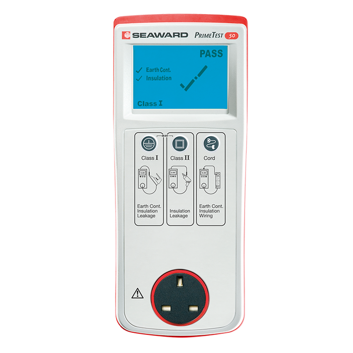 The PrimeTest 50 PAT tester incorporates a mains outlets tester and is supplied with all necessary accessories, training aids to help organisations perform PAT Testing with a minimum of fuss.