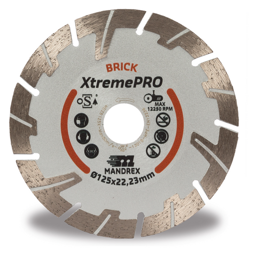 Mandrex MDZB125X XtremePRO Brick 125mm Diamond Blade Product Description Mandrex Diamond Blade Bricks XtremePRO - Ø125Top performance segmented bla...