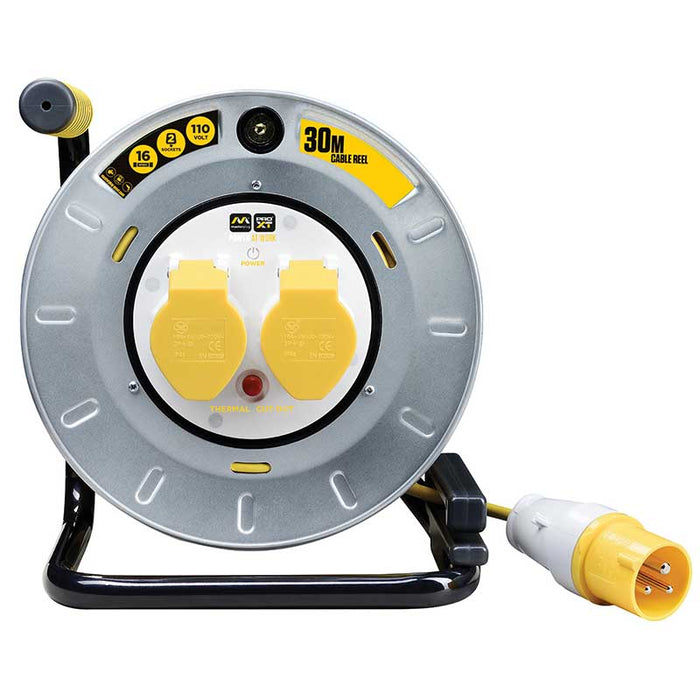 Masterplug PRO-XT 2 Socket 30m 16A 110V Metal Open Reel + Thermal CO