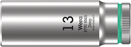 Wera 05004535001 8790 HMB Deep 3/8" socket, 13 x 64 mm Product Description The Wera manual and machine socket (ISO 2725 part 3) can be used in man...