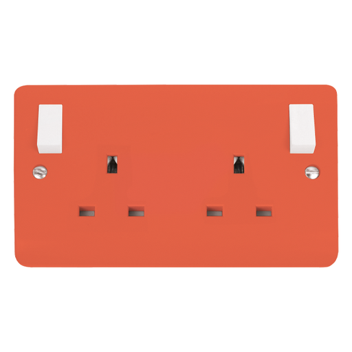 Click Mode CMA1836RDPW 13A 2 Gang DP Switched Safety Shutter Socket Outlet - Red, Polar White Rocker