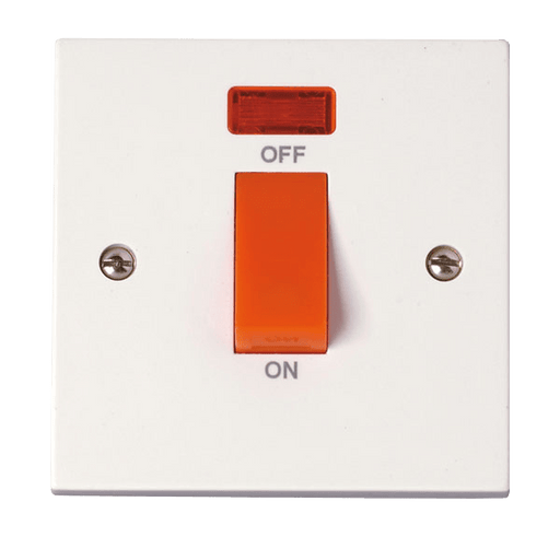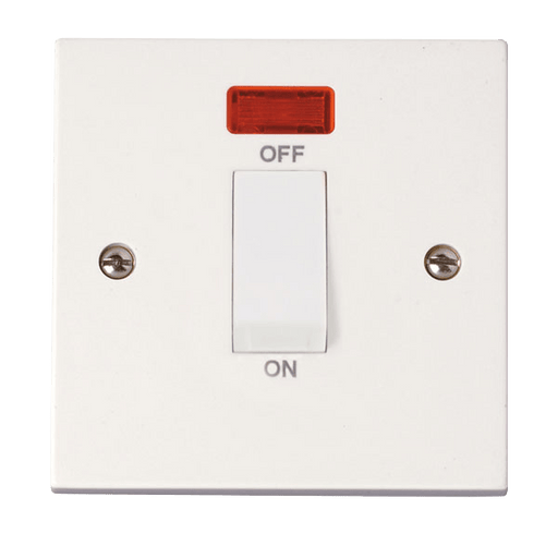 Click Polar PRW501 White Moulded 1 Gang 45A DP Switch + Neon (White Rocker)
