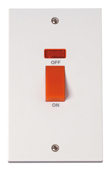 Click Polar PRW203 White Moulded 45A DP Plate Switch With Neon - Double Plate Size