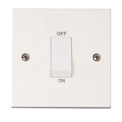 Click Polar PRW500 White Moulded 1 Gang 45A DP Switch (White Rocker)