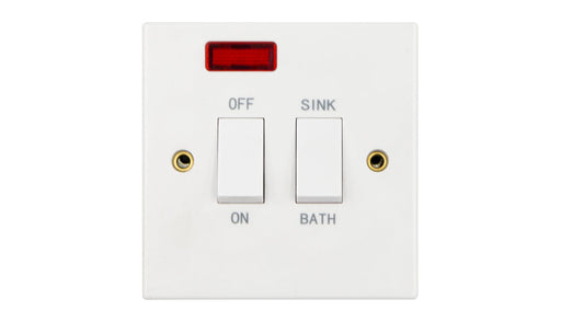View full detailsDeta Vimark VS1218N White Moulded Square Edge 20A DP Dual Bath/Sink Switch with Neon