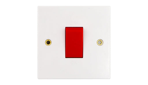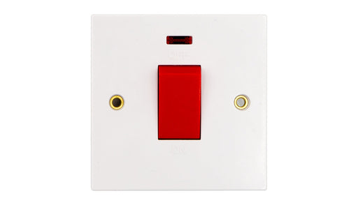 View full detailsDeta Vimark VS1300 White Moulded Square Edge 50A DP Switch Red
