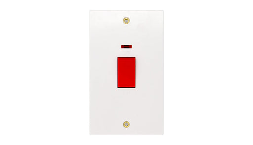 View full detailsDeta Vimark VS1301N White Moulded Square Edge 50A DP Switch Tall Neon